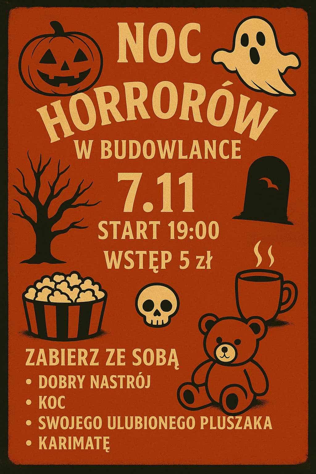 Noc horrorów w Budowlance Posted by art | paź 29, 2025 | Aktualności, Slider_główna | Noc horrorów w Budowlance