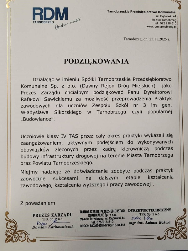 👷‍♂️Pierwsza miesięczna praktyka w Tarnobrzeskim Przedsiębiorstwie Komunalnym za nami. Dziękujemy za miłe słowa dotyczące młodzieży. Taka praktyka to✅rozwijanie kluczowych kompetencji miękkich (komunikacja, praca zespołowa) oraz ✅technicznych. Klasa IVTAS.